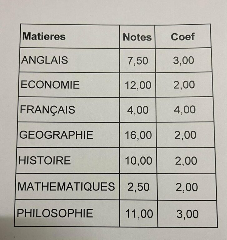 Ci-dessous la photo et les 7 copies et toutes les notes du candidat :