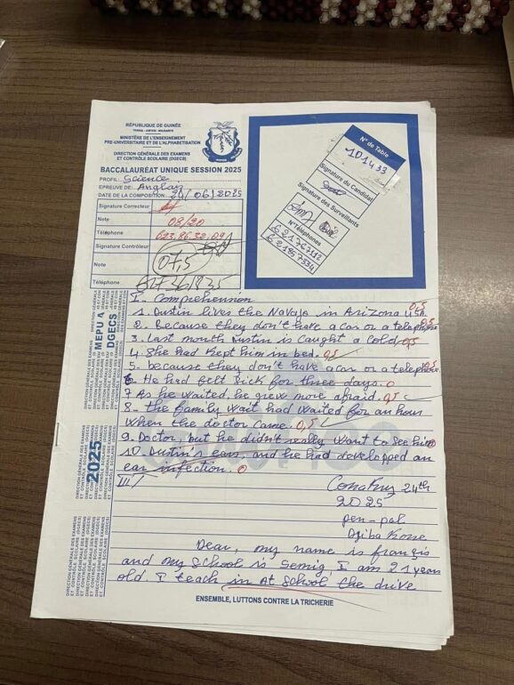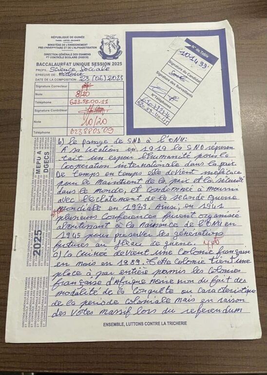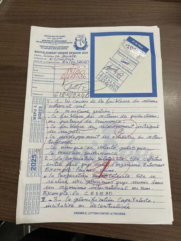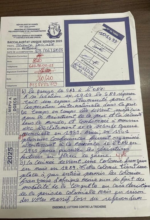 Selon la direction, c’est à travers des revendications du candidat et des explications fournies qu’elle est parvenue à mettre main sur ses informations. Elle invite donc Souleymane de se présenter à la Direction Générale des Examens et Contrôle Scolaires (DGECS), accompagné du professeur de son choix dans toutes les matières concernées, afin de procéder à une vérification de ses copies.