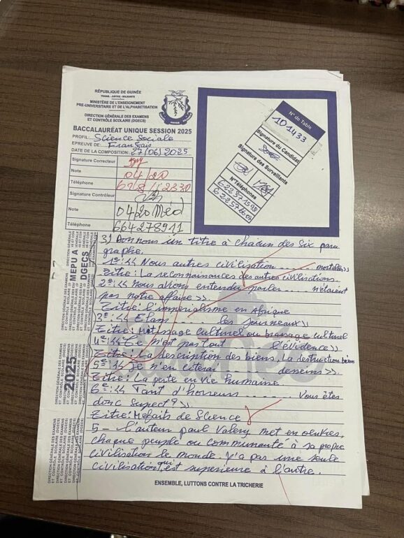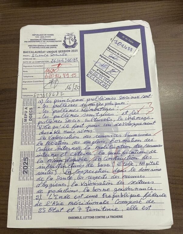« À partir de ses explications, ainsi que des éléments publiés sur les réseaux sociaux, nous avons pu, grâce aux matières mentionnées, identifier son profil, son centre et son école d’origine. Si les informations diffusées sur notre plateforme correspondent effectivement à son procès-verbal, ainsi qu’à son écriture, il peut se présenter à la Direction Générale des Examens et Contrôle Scolaires (DGECS), accompagné du professeur de son choix dans toutes les matières concernées, afin de procéder à une vérification de ses copies », a-t-elle écrit avant de mentionner que tout autre candidat qui s’estime léser dans ses droits peut procéder à des revendications.