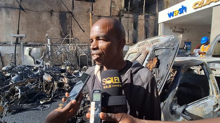 « On m’a appelé vers 4H, pour me dire qu’il y avait un incendie à la station. Donc je suis quitté à la maison, arrivé à la station, j’ai trouvé, qu’il y avait des militaires. Donc je me suis arrêté au bord de là jusqu’au matin, après on m’a fait rentrer, maintenant j’ai regardé, puis j’ai trouvé que ma voiture, est parti en fumée. On demande l’aide à tout le monde, parce que c’est dans ça qu’on gagne nos dépenses. Maintenant, il n’y en a plus », a-t-il souligné.