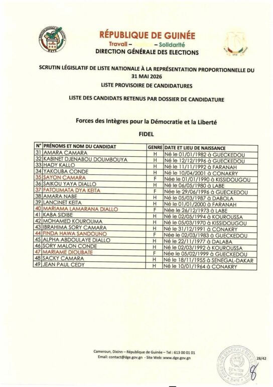 D’autant plus que les informations d’état civil associées à ces deux candidatures — notamment la date et le lieu de naissance — sont rigoureusement identiques (10/01/1964, à Conakry). De quoi écarter, à première vue, l’hypothèse d’une simple homonymie.