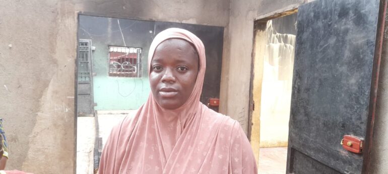 « J’ai laissé les enfants au salon. Je suis allée acheter des galettes. Les enfants sont venus me dire qu’ il y avait du feu à la maison. Je suis venue trouver qu’il y avait une fumée noire qui sortait de la maison. J’ai défoncé la porte mais les flammes avaient envahi la maison. J’ai appelé au secours. Les gens sont venus un peu partout pour éteindre le feu. Malheureusement, le feu avait tout dévoré. Il y avait le courant au moment de l’incendie »