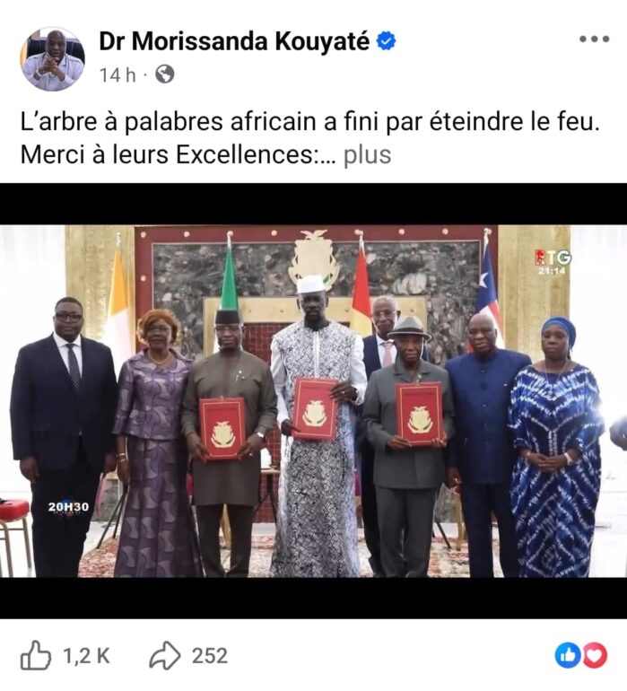 Mais c’est une déclaration du ministre guinéen des Affaires étrangères, Morissanda Kouyaté, qui a retenu l’attention. Dans un premier temps, sur sa page Facebook (Méta), il a affirmé que les pays concernés étaient « à deux doigts de la guerre », avant d’ajouter que « l’arbre à palabre africain a fini par éteindre le feu ».