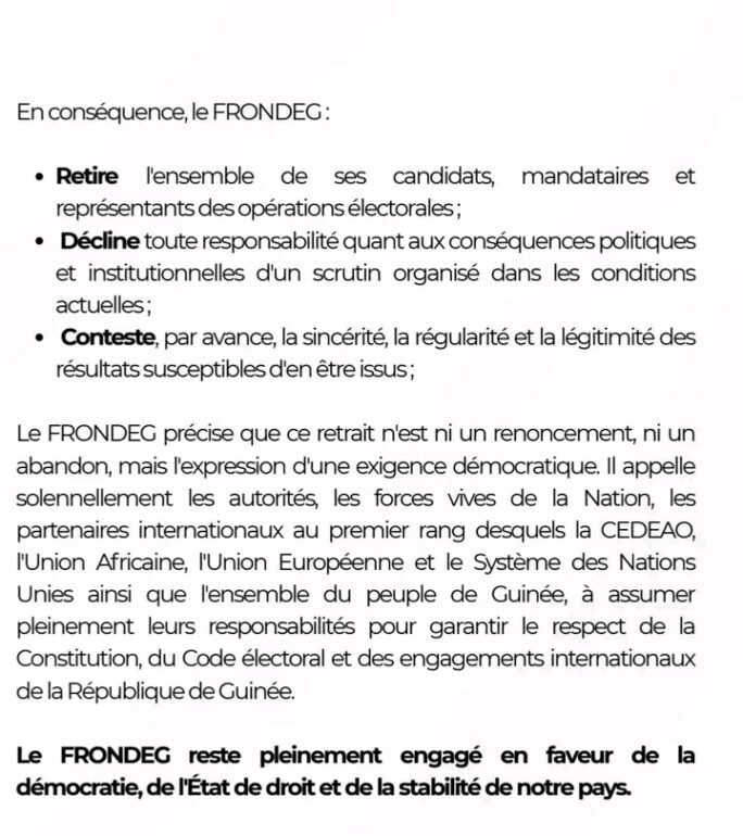 Pour le FRONDEG, les conditions minimales d’un scrutin crédible ne sont plus aujourd’hui réunies. Ci-dessous le communiqué :